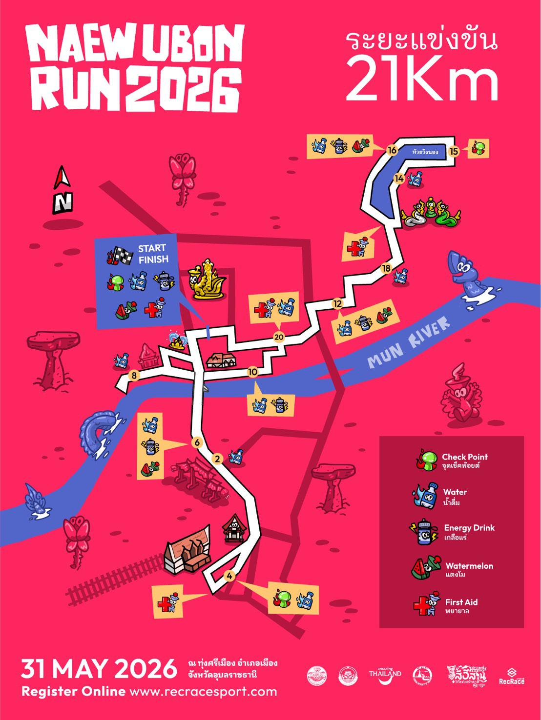 เวลา 13.00-18.00 น. ลงทะเบียนผู้สมัครล่วงหน้า รับเสื้อ เบอร์วิ่ง ชิพจับเวลาและของทีระลึก